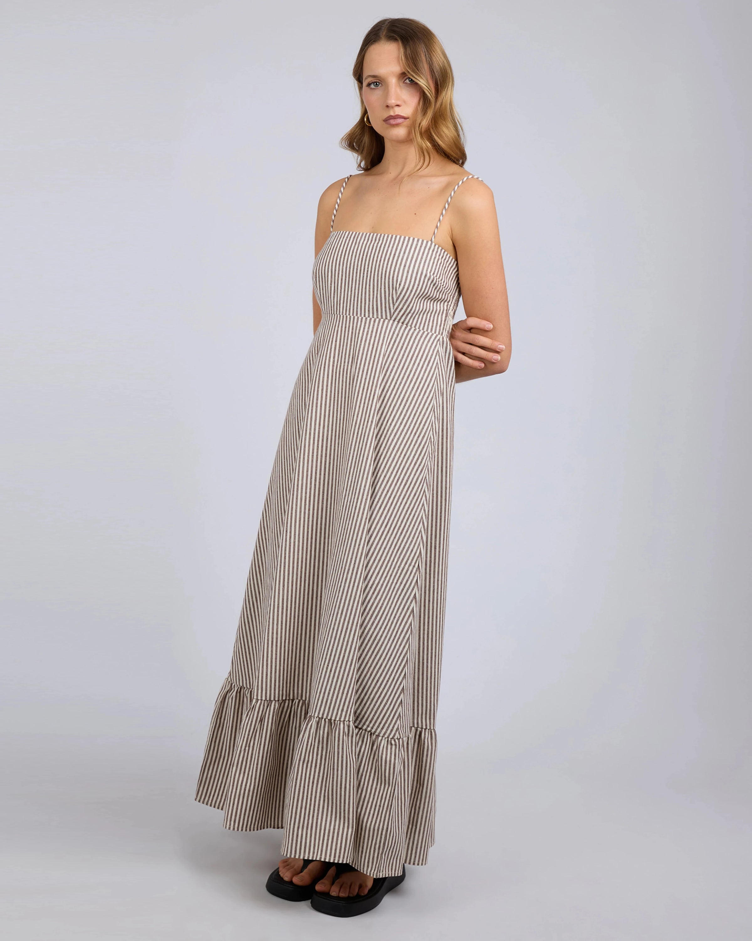 Meet the Sunday Maxi Dress, this flattering maxi dress is the easiest wardrobe throw on and go dress you wont regret it! This maxi dress features a flattering thin adjustable strap with shirred back bodice, zipper at side seam and effortless tiered hemline.