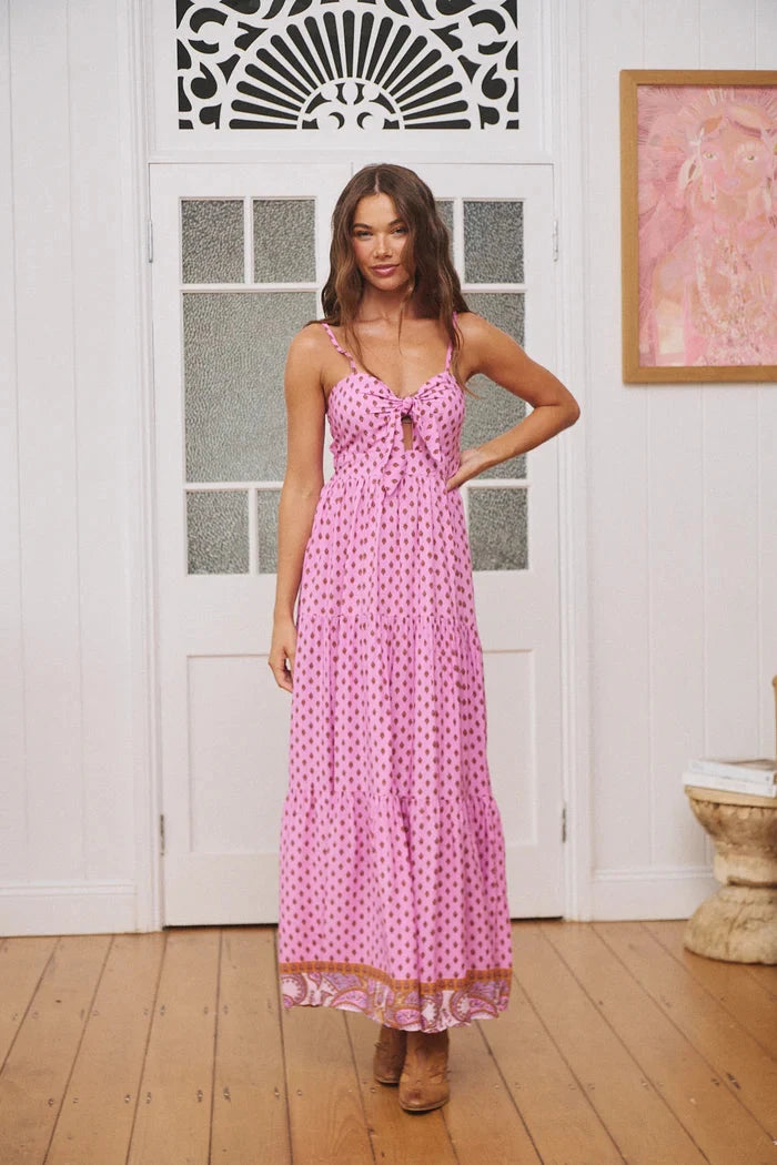 Pretty Floral Print! Make a statement in the new Bambi Maxi Dress by Jaase. This gorgeous maxi dress features cute cut-out detailing and a tiered skirt.
