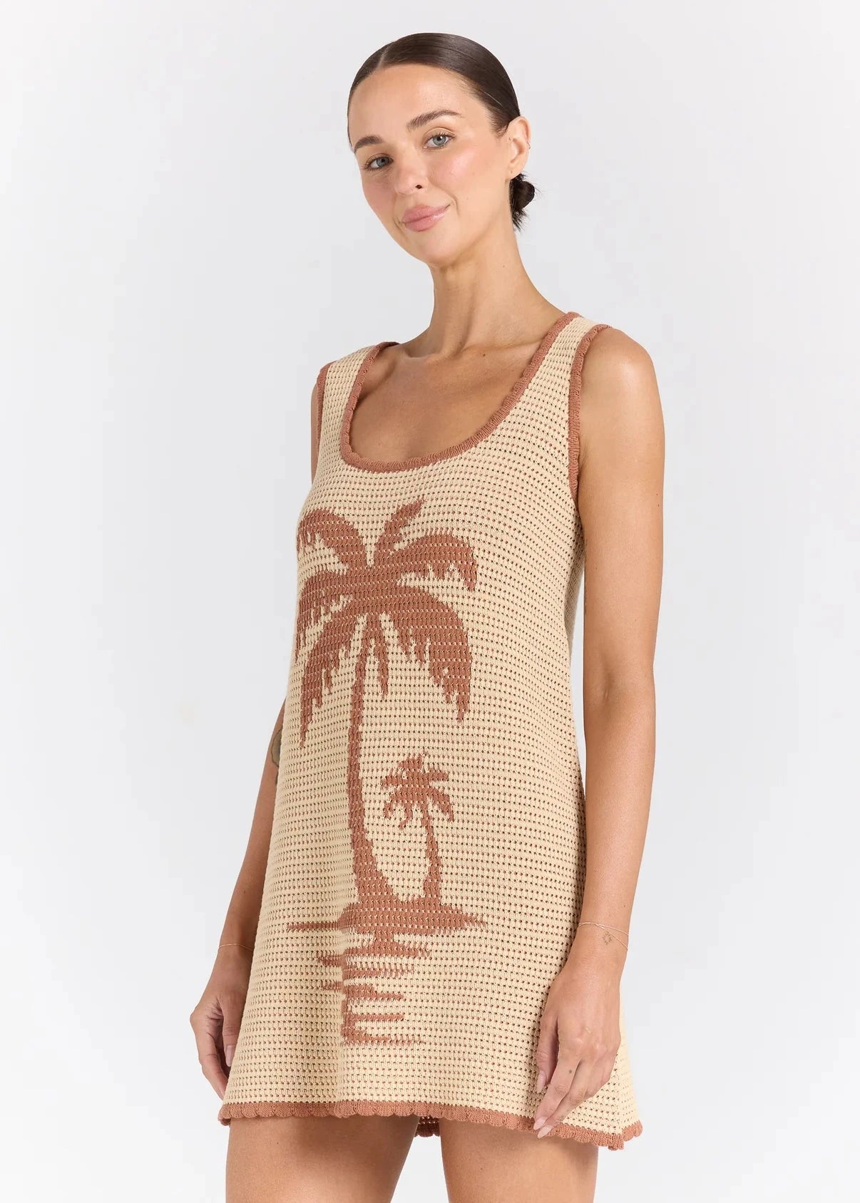 From sunrise to sunset, the Palm Beach U Knit Dress is the one you’ll reach for again and again. Crafted from soft, breathable cotton knit, it’s designed with a relaxed fit, scoop neckline, and palm tree jacquard detailing for a touch of texture and charm. Lightweight and easy to wear, this mini moves with you - perfect over swimwear or styles with slides and gold accents for long, sunlit days. Simple, timeless, and effortlessly flattering, it's your must-have Summer dress for every occasion.