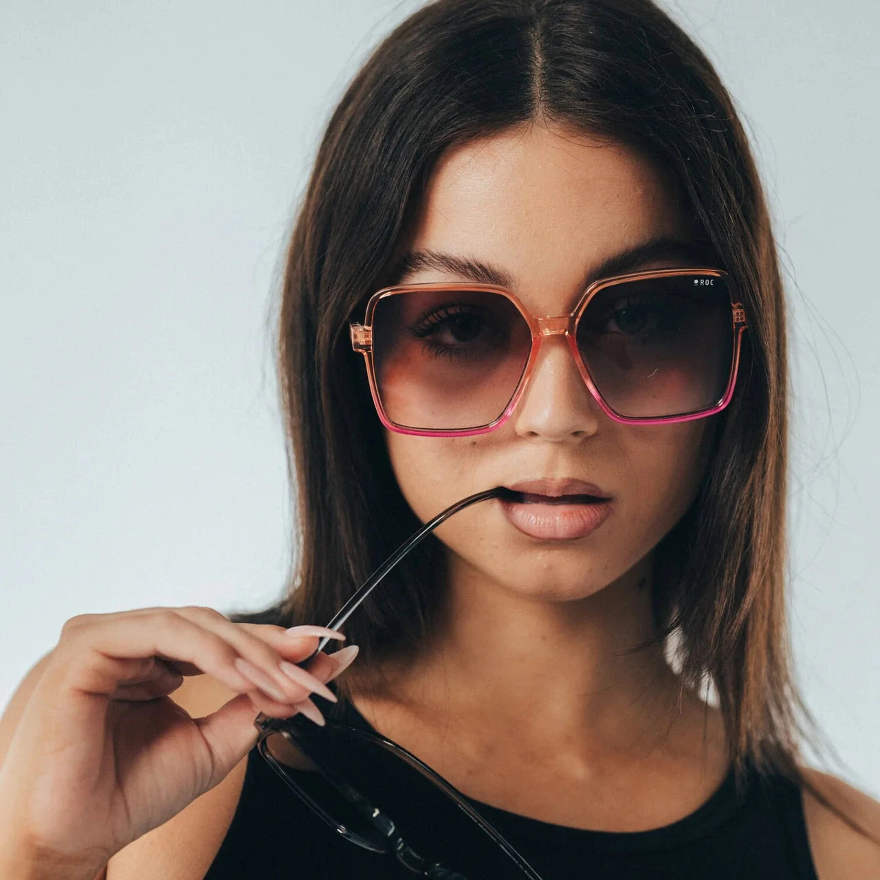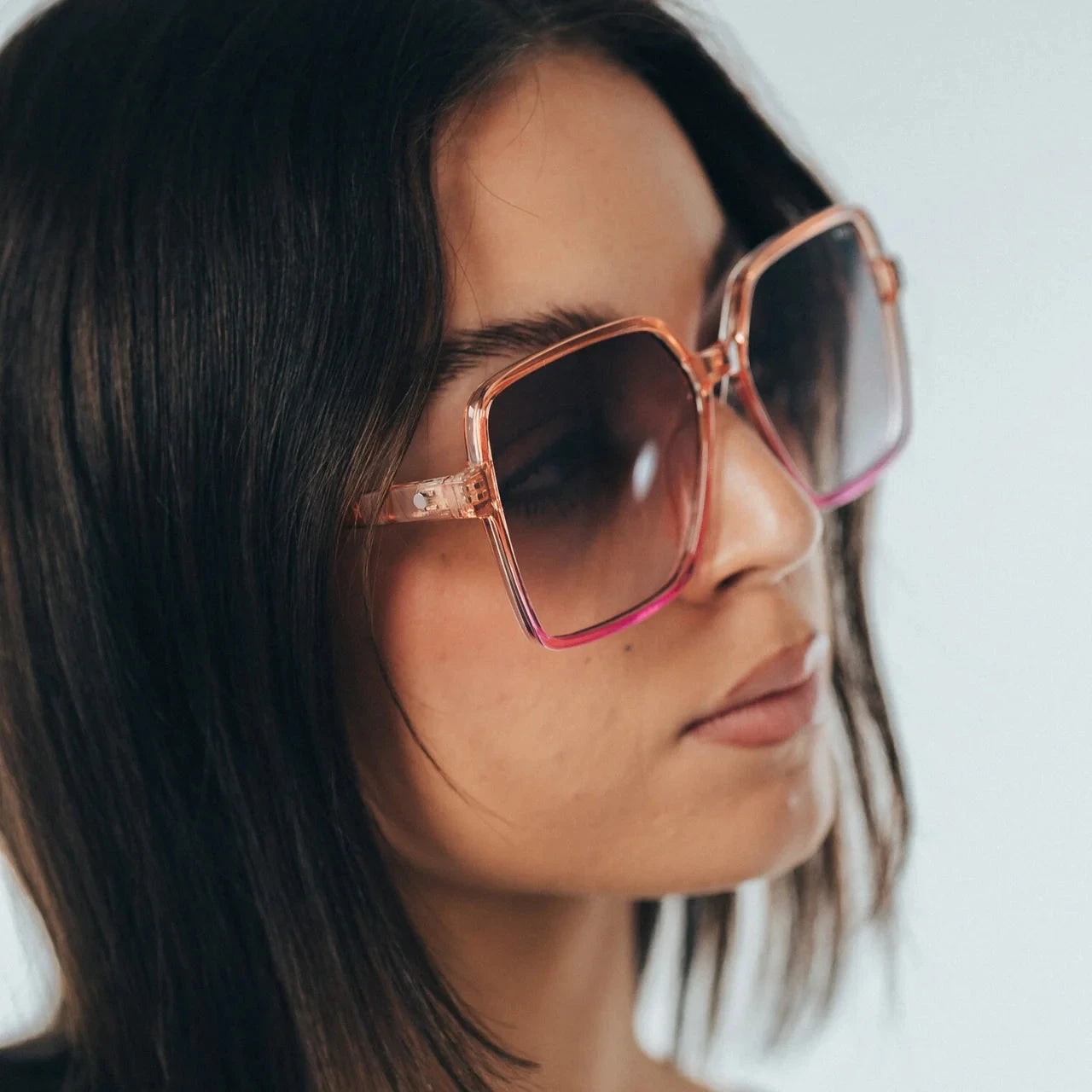 FRAME: Pink Purple Ombre LENS: Gradient Brown. 100% UV Protection. Category 2