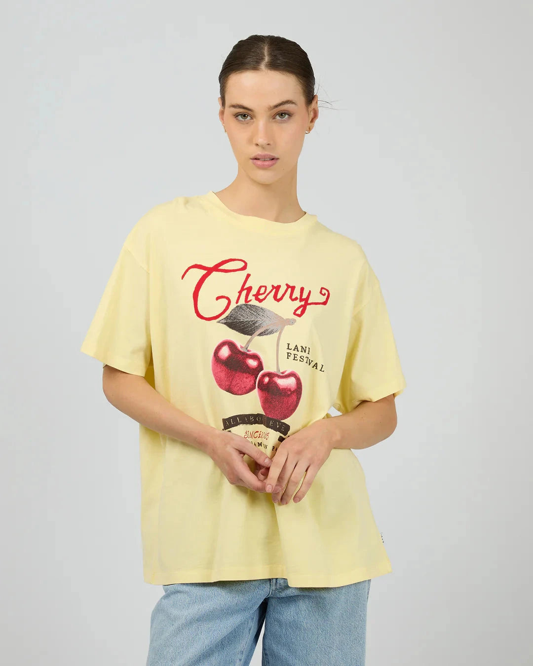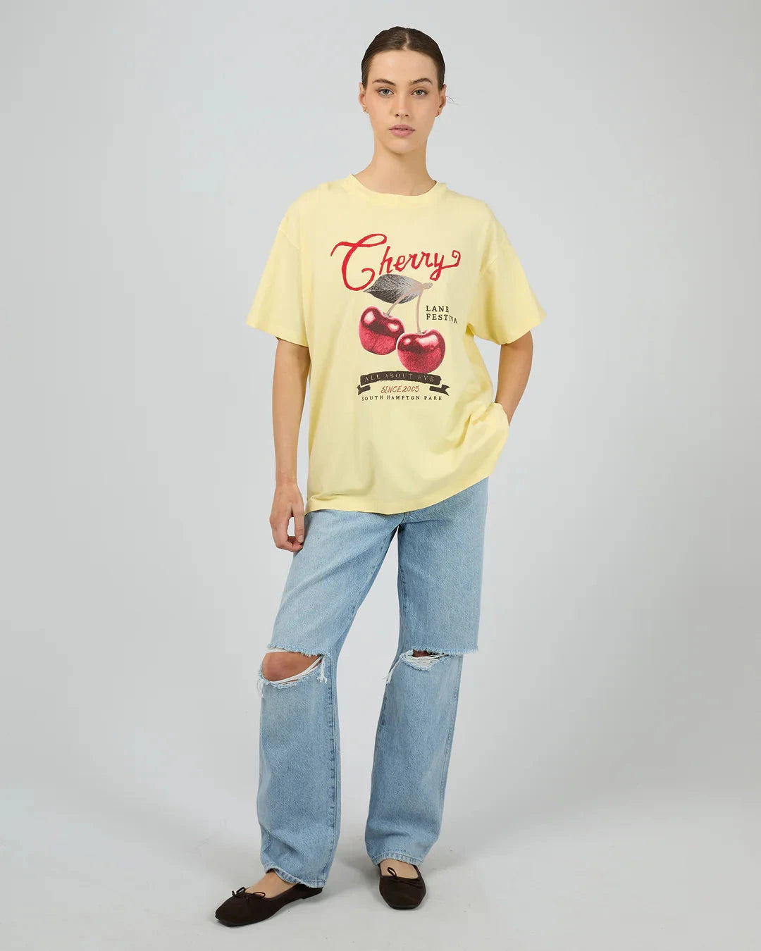 Introducing the Pippa Relaxed Tee in Yellow, designed to add a subtle pop of yellow to your wardrobe. Crafted from cotton, it features a relaxed fit silhouette with an All About Eve exclusive cherry graphic, delivering comfort and effortless wear. Style it casually for brunch with the girls, or pair it back with your favourite denim jeans for relaxed family gatherings.