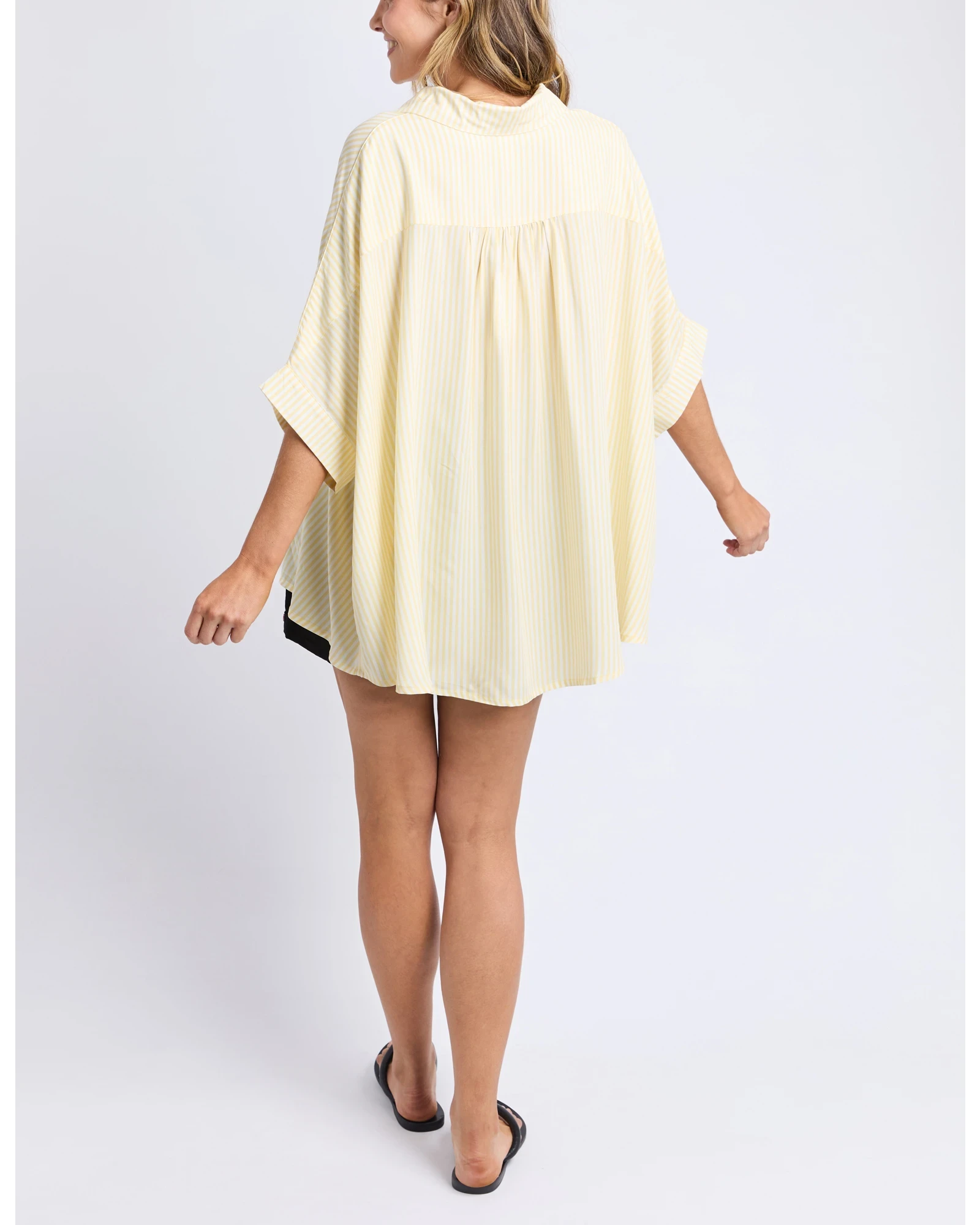 The Luna Shirt features a loose fit for relaxed comfort and a classic collared neckline. Its button-through front adds versatility, allowing for easy layering or standalone wear with a polished yet effortless look.