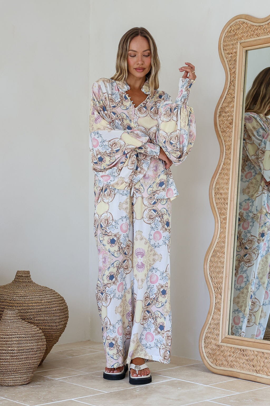 Drift through your day in effortless style with the Versaille Dreams Blouse, a dreamy escape in fabric form. This flowy blouse features an enchanting paisley print that dances across the silhouette, bringing bohemian flair to any outfit. Comfort meets whimsy in this must-have blouse that prove you don't have to choose between looking fabulous and feeling amazing.