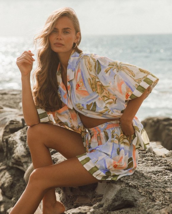 The Delphine Shirt brings effortless style to your everyday wardrobe. This charming button-up features a beautiful floral print that adds a touch of natural elegance, while crisp green striped trim along the edges creates a polished, finished look. Perfect for layering or wearing solo, it's a versatile piece that transitions seamlessly from casual outings to relaxed gatherings. The classic button-front design makes this shirt a reliable choice for anyone seeking comfort without compromising on style. Pair with the Delphine Short for a matching set vibe.