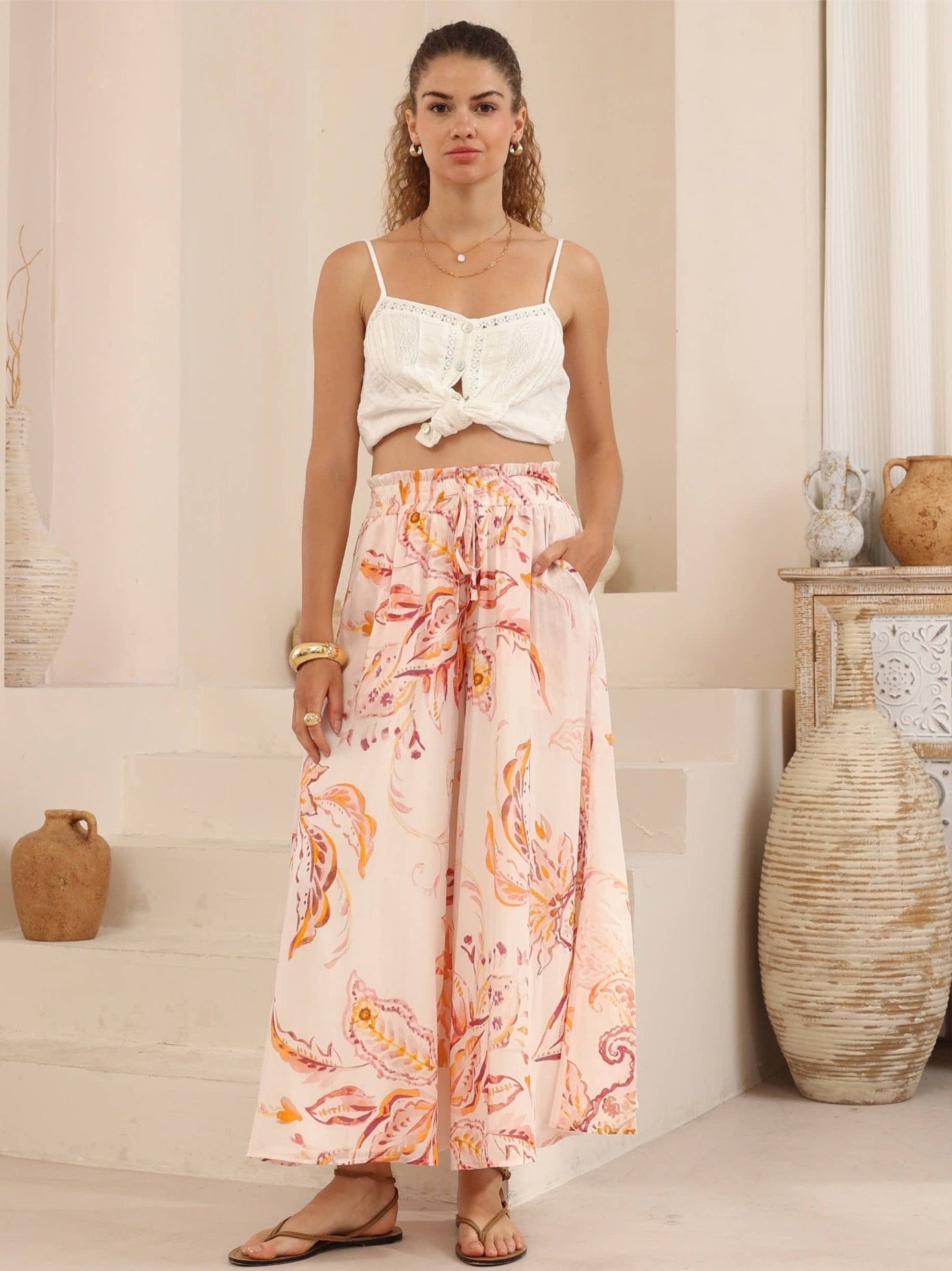 Embrace effortless style with these Golden Hour Pants, featuring a stunning pink and orange tropical print that captures the warmth of a perfect sunset. The flowy silhouette moves beautifully with you, offering comfort and breathability for warm weather adventures. Whether you're heading to the beach, exploring a tropical destination, or simply wanting to bring vibrant colour into your everyday wardrobe, these pants deliver both style and ease. Perfect for layering or wearing solo, they're a versatile piece that celebrates your adventurous spirit.